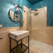 Il bagno, dal design moderno e raffinato, è dotato di una spaziosa doccia e di un bidet, offrendovi il massimo comfort e praticità.